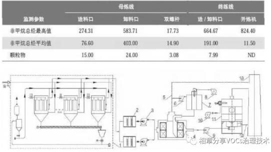 針對煉膠車間產(chǎn)生的廢氣特點(diǎn),采取“預(yù)處理+濃縮轉(zhuǎn)輪+RTO”的工藝方法進(jìn)行處理,處理后的廢氣排放指標(biāo)遠(yuǎn)遠(yuǎn)低于國家標(biāo)準(zhǔn),可實(shí)現(xiàn)超低排放。